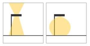 نحوه پخش نور در فضا، که میتواند متمرکز یا گسترده باشد.